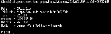| FiLENAME: | Gluecklich.geschieden.Mama.gegen.Papa.2.German.2016.AC3.BDRip.x264-CHECKMATE.mkv |