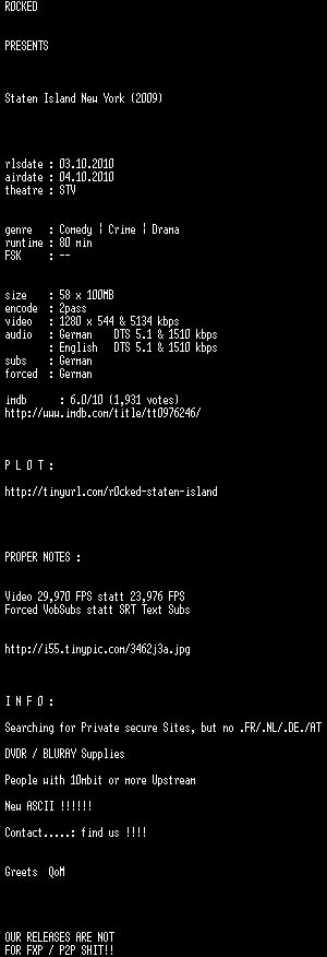 | FiLENAME: | Staten Island New York (2009) [DL-dts 720p BD].mkv |