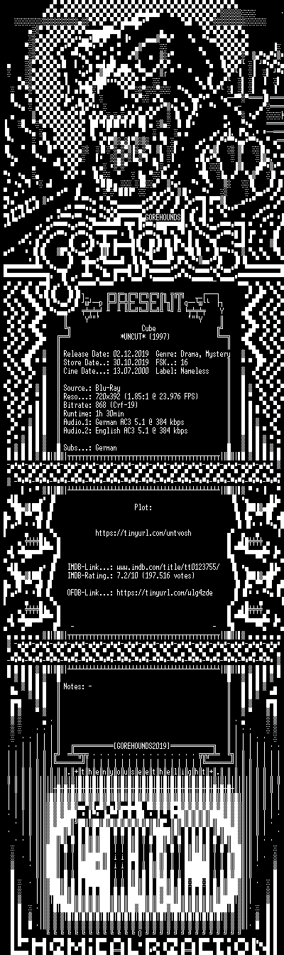 | FiLENAME: | Cube.1997.REMASTERED.GERMAN.DL.BDRiP.x264-GOREHOUNDS.mkv |