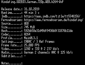 | FiLENAME: | Hindafing.S02E03.German.720p.WEB.h264-WvF.mkv |