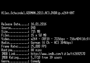 | FiLENAME: | Alles.Schwindel.GERMAN.2013.AC3.DVDRip.x264-KNT.mkv |
