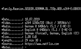 | FiLENAME: | Family.Reunion.S01E08.GERMAN.DL.720p.WEB.x264-EiSBOCK.mkv |