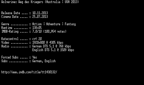 | FiLENAME: | Wolverine.Weg.des.Kriegers.EXTENDED.German.DL.1080p.BluRay.x264-EXQUiSiTE.mkv |
