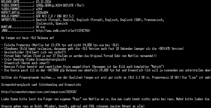 | FiLENAME: | Die.wahren.Memoiren.eines.internationalen.Killers.2016.German.AC3D.DL.1080p.WEBRip.x264.PROPER-PROPERMANiA.mkv |