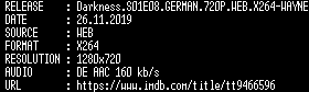 | FiLENAME: | Darkness.S01E08.GERMAN.720P.WEB.X264-WAYNE.mkv |