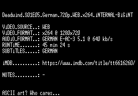 | FiLENAME: | Deadwind.S01E05.German.720p.WEB.x264.iNTERNAL-BiGiNT.mkv |