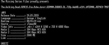 | FiLENAME: | The.Walking.Dead.S09E15.Die.Ruhe.davor.GERMAN.DUBBED.DL.720p.WebHD.x264.iNTERNAL.REPACK-TMSF.mkv |