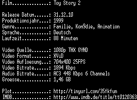| FiLENAME: | Toy.Story.2.1999.GERMAN.AC3.HDRiP.XViD-CAOS.avi |