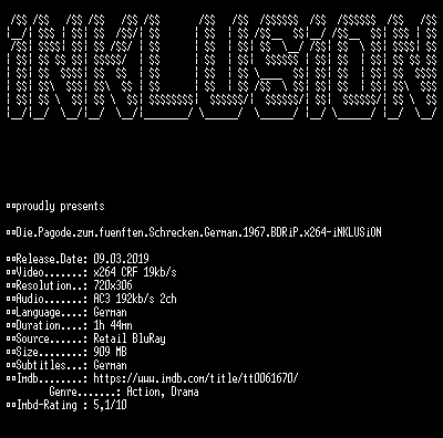 | FiLENAME: | Die.Pagode.zum.fuenften.Schrecken.German.1967.UNCUT.BDRiP.x264-iNKLUSiON.mkv |