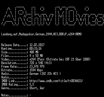 | FiLENAME: | Landung.auf.Madagaskar.German.1944.AC3.BDRiP.x264-ARMO.mkv |
