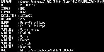 | FiLENAME: | Cannon.Busters.S01E09.GERMAN.DL.ANIME.720P.WEB.X264-WAYNE.mkv |