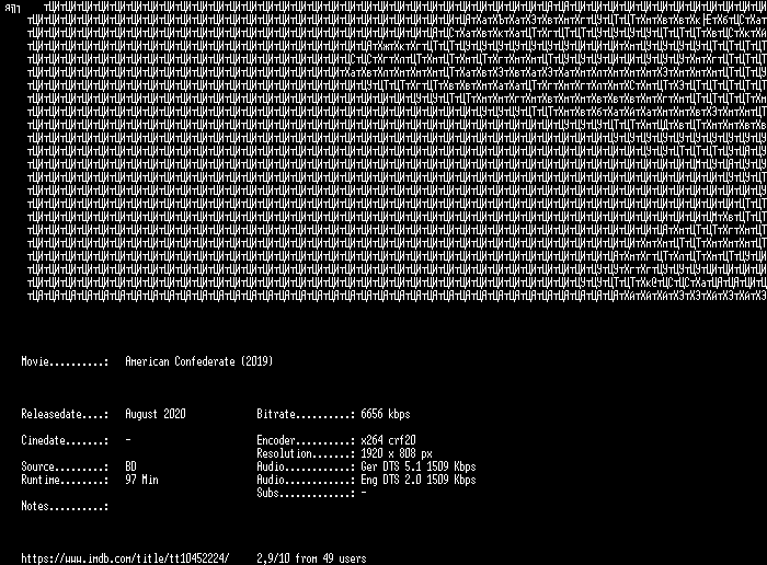 | FiLENAME: | American.Confederate.2019.German.DL.1080p.BluRay.x264-LizardSquad.mkv |