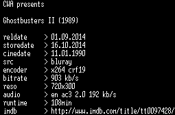 | FiLENAME: | Ghostbusters.II.1989.German.BDRip.x264.iNTERNAL-CWA.mkv |