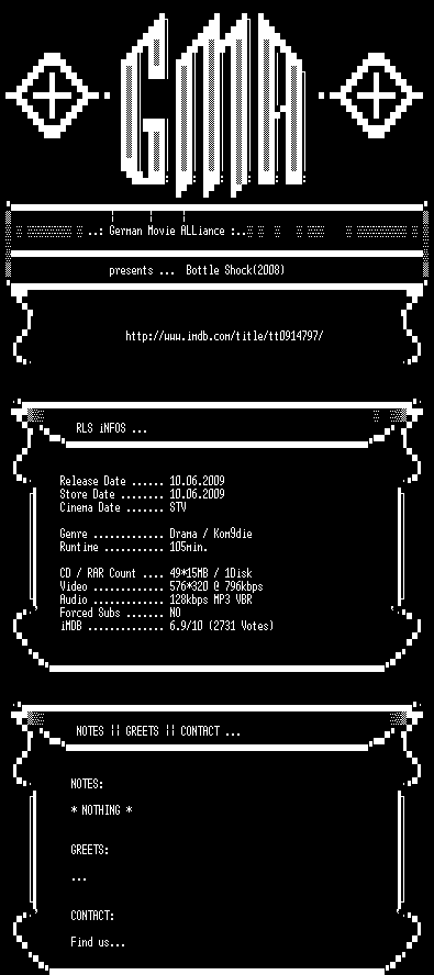 | FiLENAME: | Bottle Shock (2008) [GER WS DVD].avi |