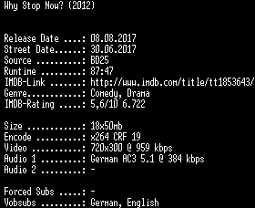 | FiLENAME: | Why.Stop.Now.German.2012.AC3.BDRip.x264-SPiCY.mkv |