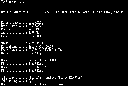 | FiLENAME: | Marvels.Agents.of.S.H.I.E.L.D.S05E14.Der.Teufel-Komplex.German.DL.720p.BluRay.x264-TV4A.mkv |
