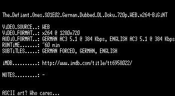 | FiLENAME: | The.Defiant.Ones.S01E02.German.Dubbed.DL.Doku.720p.WEB.x264-BiGiNT.mkv |
