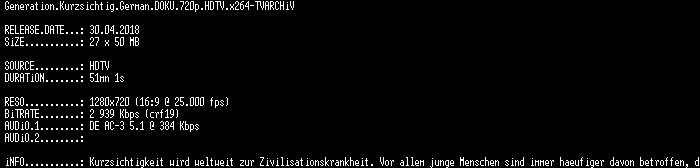 | FiLENAME: | Generation.Kurzsichtig.German.DOKU.720p.HDTV.x264-TVARCHiV.mkv |