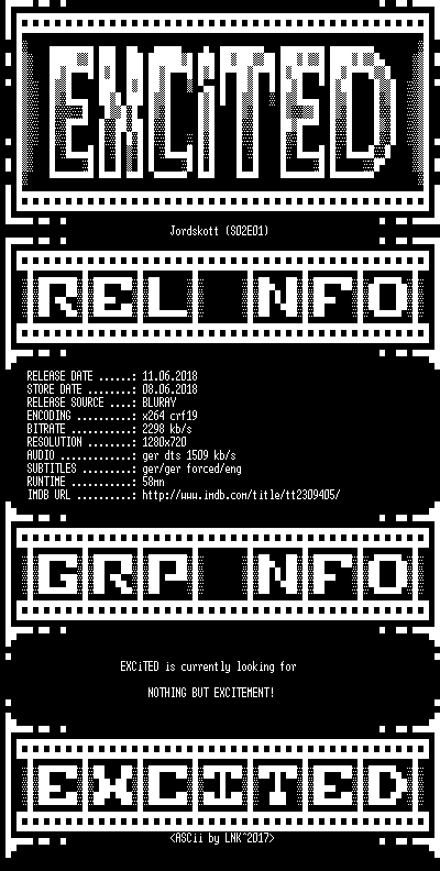 | FiLENAME: | Jordskott.S02E01.German.720p.BluRay.x264-EXCiTED.mkv |