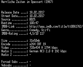 | FiLENAME: | Herrliche.Zeiten.im.Spessart.German.REMASTERED.1967.AC3.BDRip.x264-SPiCY.mkv |