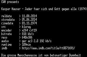 | FiLENAME: | Kaspar.Hauser.Jeder.fuer.sich.und.Gott.gegen.alle.1974.German.BDRip.x264.iNTERNAL-CWA.mkv |