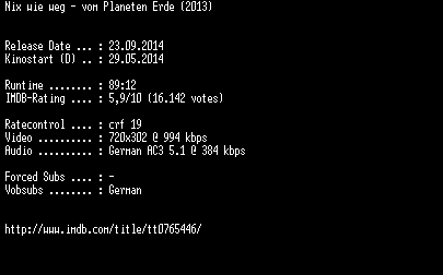 | FiLENAME: | Nix.wie.weg.vom.Planeten.Erde.German.BDRiP.x264-EXQUiSiTE.mkv |
