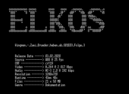 | FiLENAME: | Wingmen.-.Zwei.Brueder.heben.ab.S01E03.Folge.3.GERMAN.DOKU.720p.WebHD.x264-ELKOS.mkv |