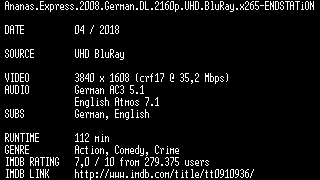 | FiLENAME: | Ananas.Express.2008.German.DL.2160p.UHD.BluRay.x265-ENDSTATiON.mkv |