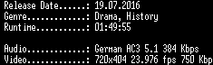 | FiLENAME: | Confirmation.2016.German.AC3.WEBRip.x264-MULTiPLEX.mkv |