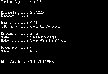 | FiLENAME: | The.Last.Days.on.Mars.German.2013.BDRiP.x264-EXQUiSiTE.mkv |