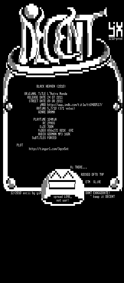 | FiLENAME: | Black.Heaven.German.2010.DVDRip.XviD-DECENT.avi |