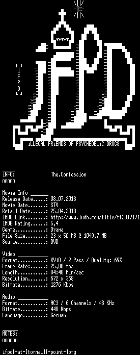 | FiLENAME: | The.Confession.2013.GERMAN.AC3.DVDRiP.XViD-iFPD.avi |