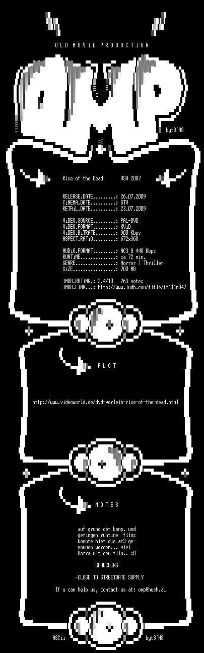 | FiLENAME: | Rise.of.the.Dead.German.2007.AC3.DVDRiP.XViD-OMP.avi |