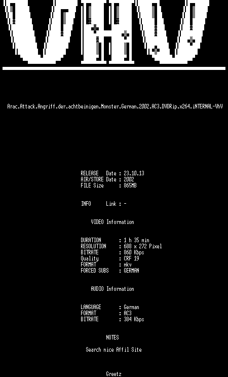 | FiLENAME: | Arac.Attack.Angriff.der.achtbeinigen.Monster.German.2002.AC3.DVDRip.x264.iNTERNAL-VhV.mkv |