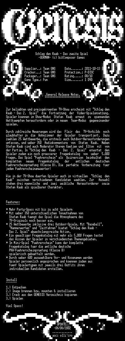 | FiLENAME: | Schlag.den.Raab.Das.zweite.Spiel.GERMAN-GENESIS.iso |