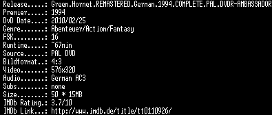 | FiLENAME: | Green.Hornet.REMASTERED.German.1994.DVDRiP.XViD-AMBASSADOR.avi |