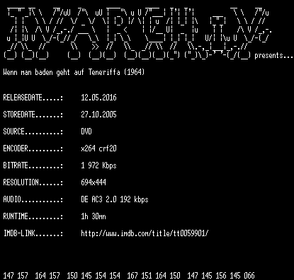 | FiLENAME: | Wenn.man.baden.geht.auf.Teneriffa.1964.German.DVDRip.x264-TVARCHiV.mkv |
