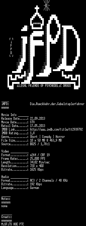 | FiLENAME: | Die.Rueckkehr.der.Gabelstaplerfahrer.German.2012.AC3.BDRiP.x264-iFPD.mkv |
