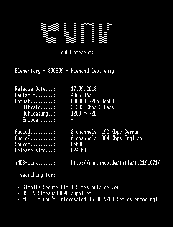 | FiLENAME: | Elementary.S06E09.Niemand.lebt.ewig.GERMAN.DUBBED.DL.720p.WebHD.h264-euHD.mkv |