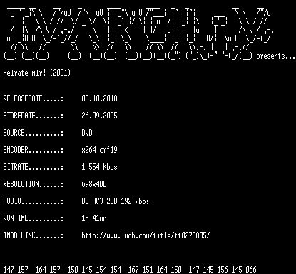 | FiLENAME: | Heirate.Mir.2001.German.DVDRip.x264.iNTERNAL-TVARCHiV.mkv |