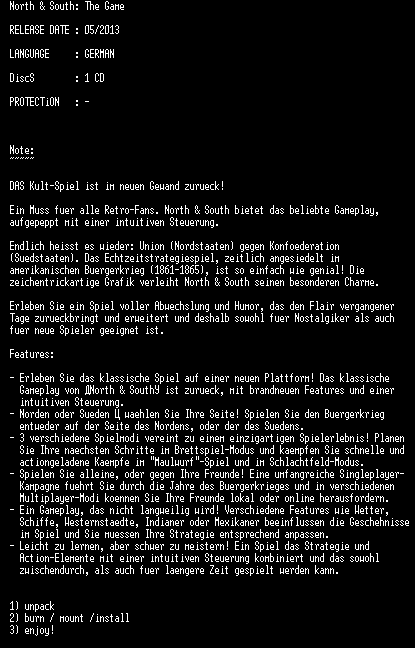 | FiLENAME: | North.und.South.The.Game.GERMAN-0x0815.iso |