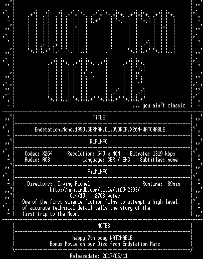 | FiLENAME: | Endstation.Mond.1950.GERMAN.DL.DVDRIP.X264-WATCHABLE.mkv |