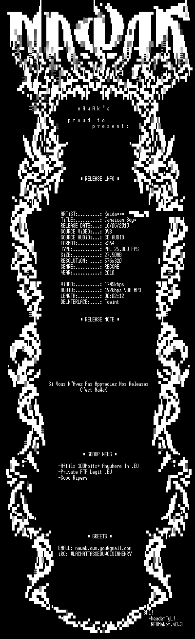 | FiLENAME: | Keida-Jamaican_Boy-CONVERT-x264-2010-NaWaK.mkv |
