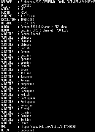 | FiLENAME: | Eisbaeren.2022.GERMAN.DL.DOKU.1080P.WEB.H264-WAYNE.mkv |