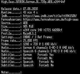 | FiLENAME: | High.Seas.S03E06.German.DL.720p.WEB.x264-WvF.mkv |