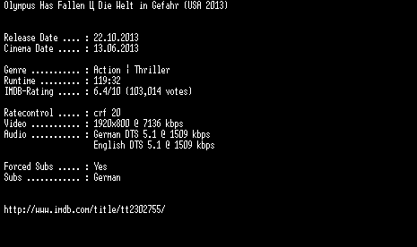 | FiLENAME: | Olympus.Has.Fallen.Die.Welt.in.Gefahr.German.DL.1080p.BluRay.x264-EXQUiSiTE.mkv |