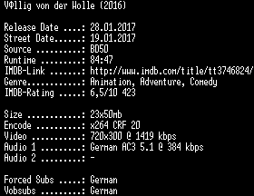 | FiLENAME: | Voellig.von.der.Wolle.Ein.maeaeaehrchenhaftes.Kuddelmuddel.German.2016.AC3.BDRip.x264-SPiCY.mkv |