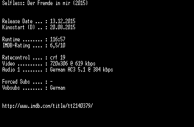 | FiLENAME: | Selfless.Der.Fremde.in.mir.German.2015.AC3.BDRiP.x264-EXQUiSiTE.mkv |