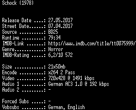 | FiLENAME: | Schock.German.REMASTERED.1978.AC3.BDRip.x264-SPiCY.mkv |
