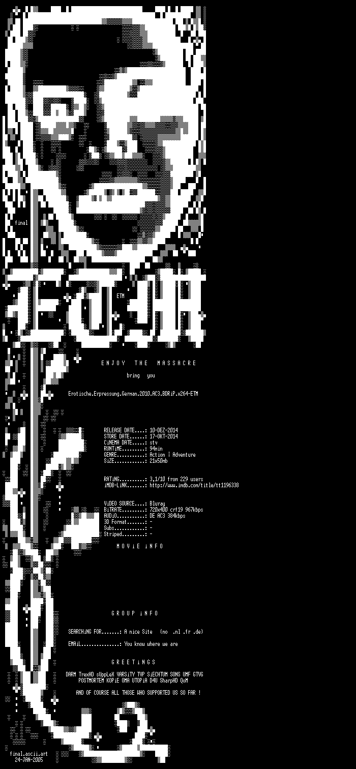 | FiLENAME: | Erotische.Erpressung.German.2010.AC3.BDRiP.x264-ETM.mkv |